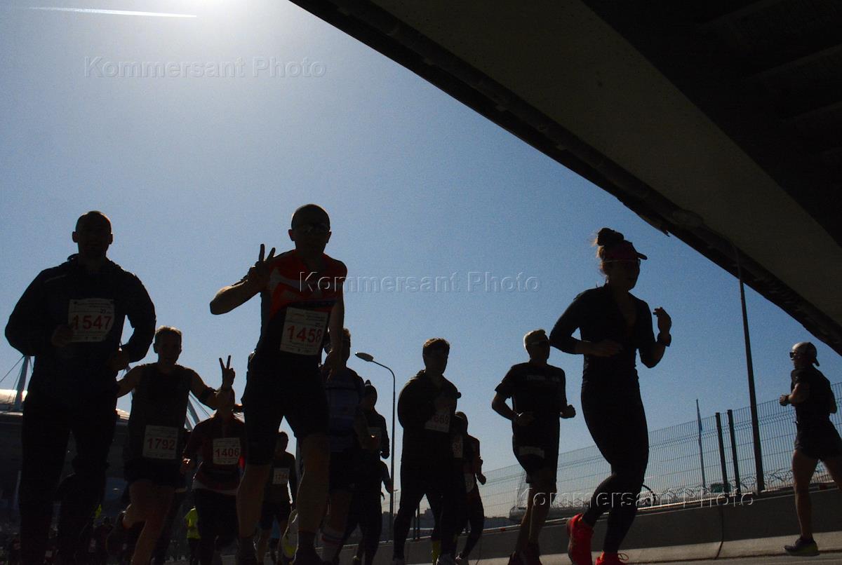 Серия забегов Pushkin run на 5, 10 и 21 километров. Участники во время забегов.