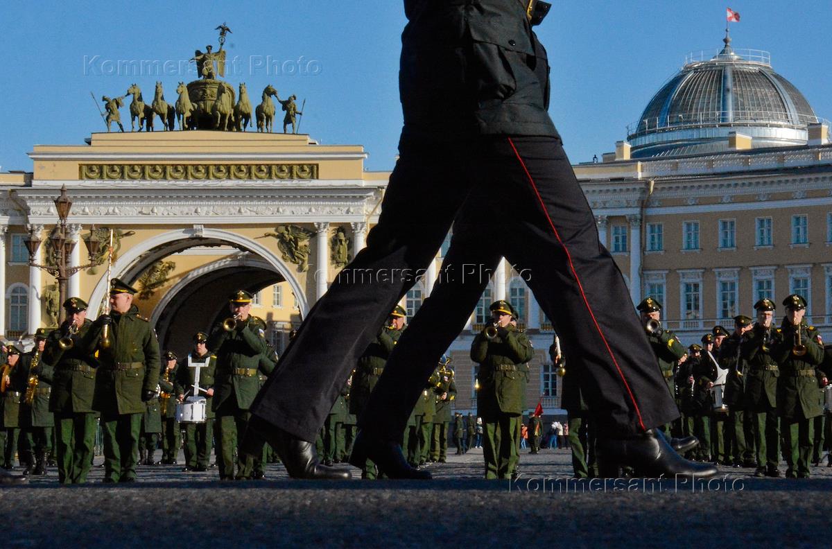 Репетиция Парада Победы 19 апреля 2021 года на Дворцовой площади.