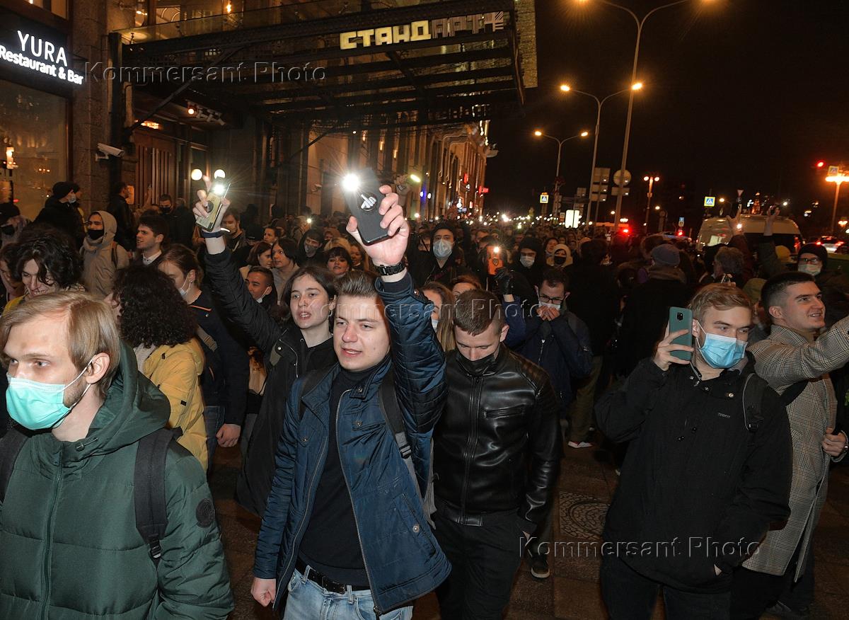 Несогласованная акция в поддержку оппозиционера Алексея Навального. Участники акции на Тверской…
