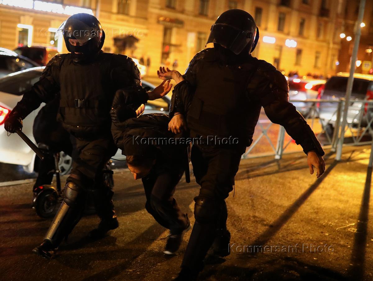 Несогласованная акция в поддержку политика Алексея Навального в центре Санкт-Петербурга