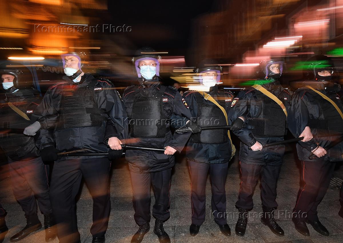 Несогласованная акция в поддержку оппозиционера Алексея Навального в центре города. Сотрудники…