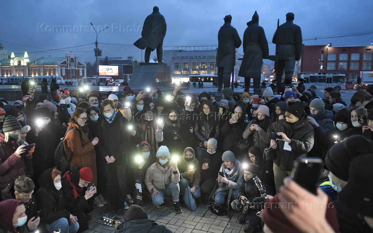 Несогласованная акция в поддержку политика Алексея Навального в центре Новосибирска.