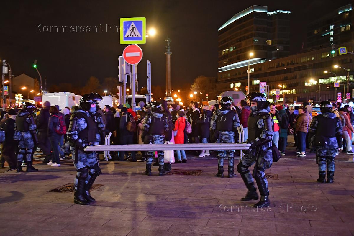 Несогласованная акция в поддержку оппозиционера Алексея Навального в центре города. Сотрудники…
