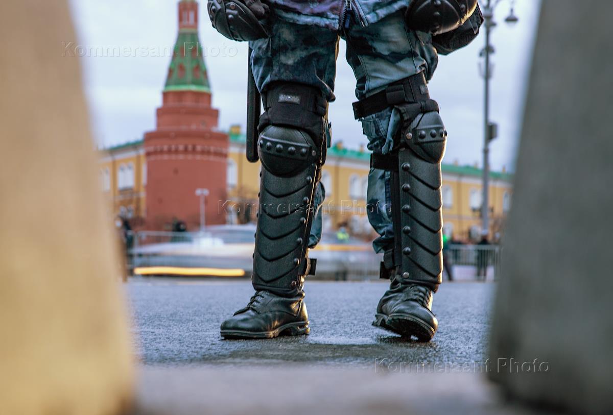Несогласованная акция в поддержку политика Алексея Навального. Сотрудники Росгвардии во время…