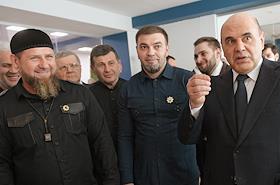 Рабочая поездка председатля правительства России Михаила Мишустина в Чеченскую Республику. Справа…