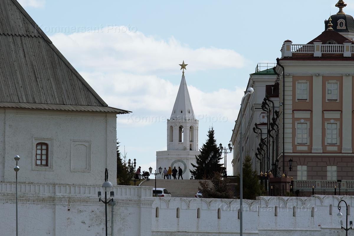 Виды Казани. Вид на Спасскую башню Казанского Кремля с Кремлевской дамбы.