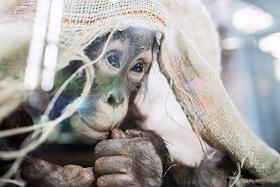 Жанровая фотография. Обезьяна в вольере Калининградского зоопарка.
