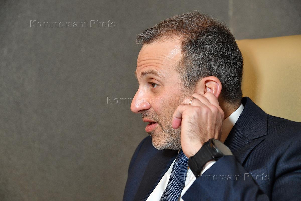Бывший глава Министерства иностранных дел (МИД) Ливана Джебран Басиля во время интервью в гостинице…