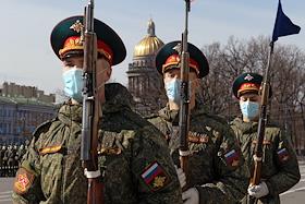 Репетиция военного парада в честь 76-й годовщины Победы в Великой Отечественной войне в Санкт-Петербурге на Дворцовой площади.