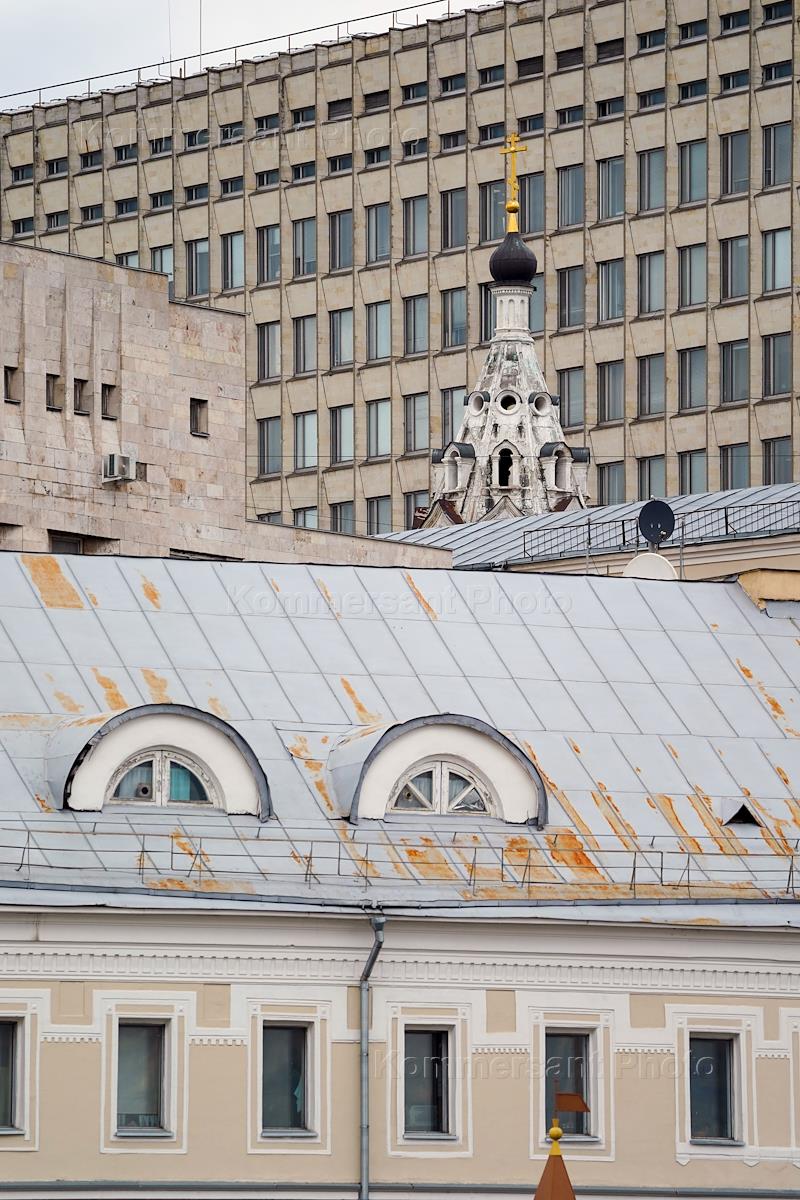 Виды Москвы. Жанровая фотография. Купол церкви Николая Чудотворца "Красный звон", окруженной домами,…
