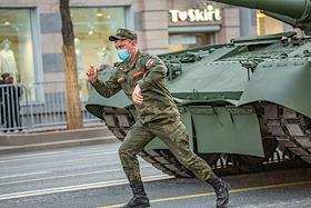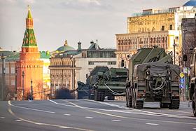 Репетиция военного парада в честь 76-й годовщины Победы в Великой Отечественной войне. Проезд военной техники по Тверской улице.