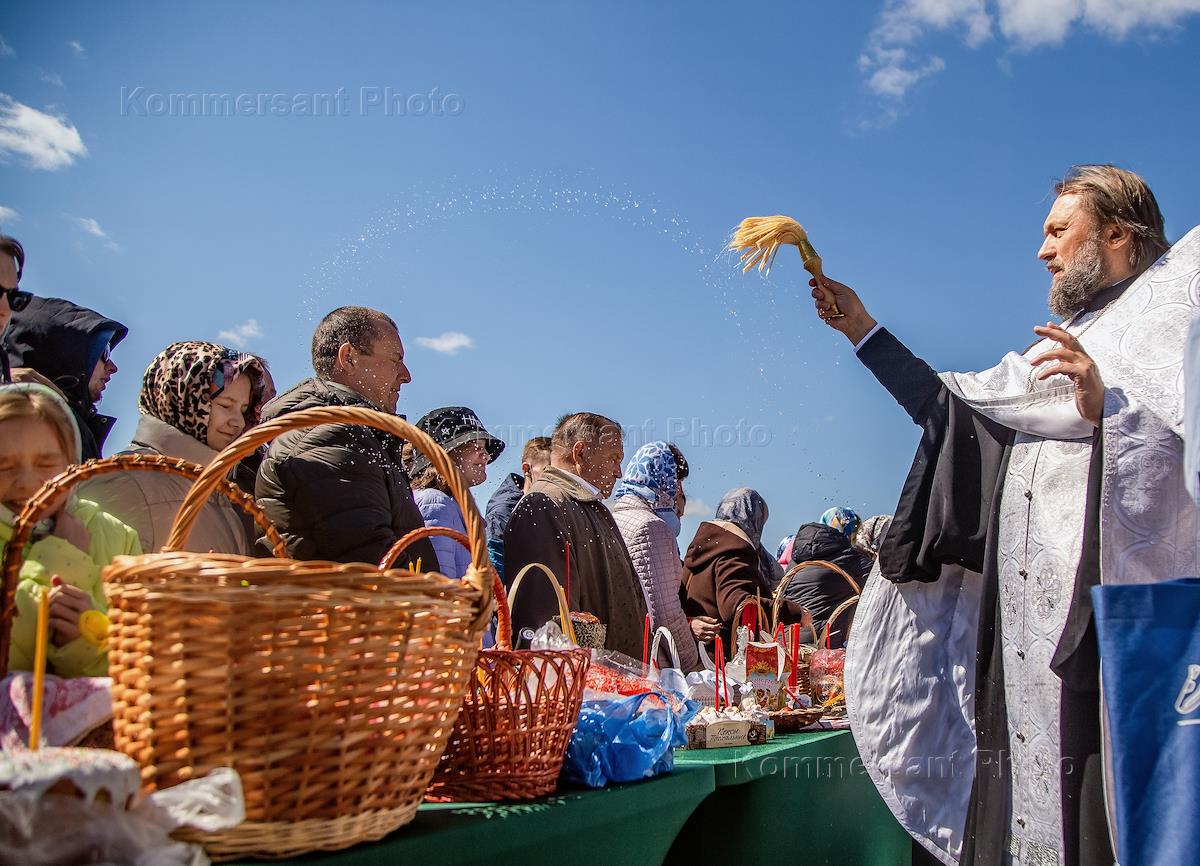 Религия Великая Суббота. Чин освящения пасхальных куличей, яиц и пасхи в канун Светлого Христова Воскресения в храме Воскресения Христова (Главный храм Вооруженных Сил России).