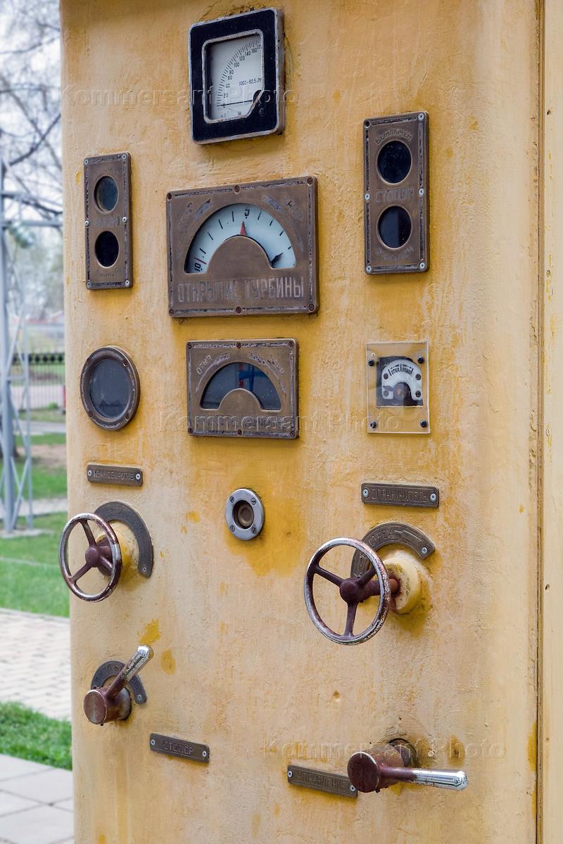 Колонка ручного управления турбиной 1940 года выпуска в музее гидроэнергетики при Угличской ГЭС.
