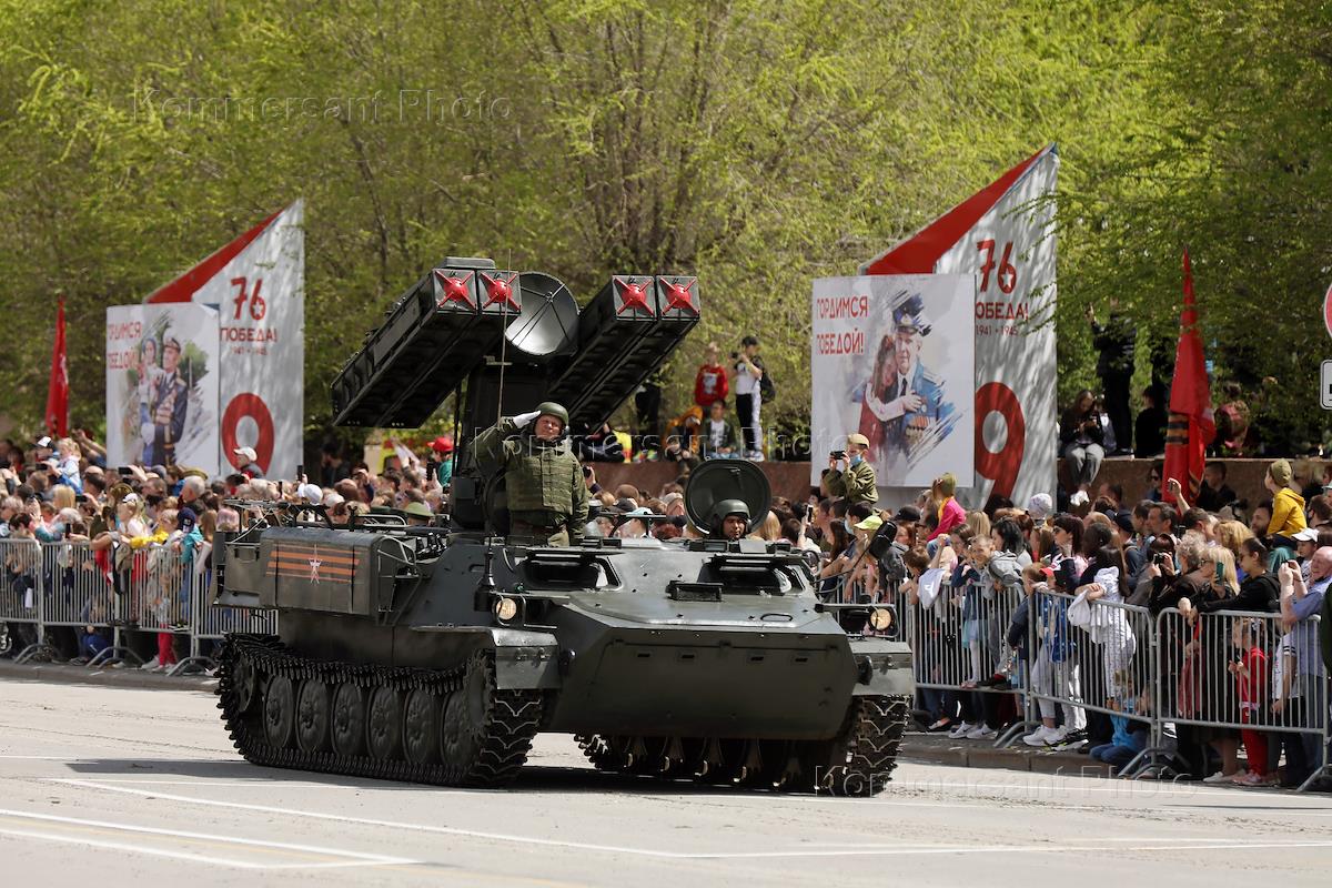 Генеральная репетиция парада, посвященного 76-й годовщине Победы в Великой Отечественной войне, на площади Павших Борцов в Волгограде.