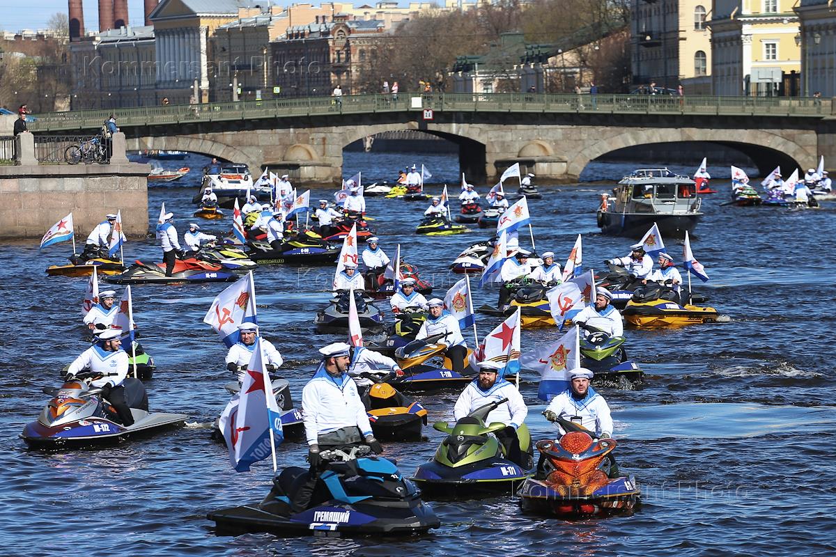 Празднование Дня Победы. Парад речных трамваев и гидроциклов "Бессмертная флотилия", посвященный…