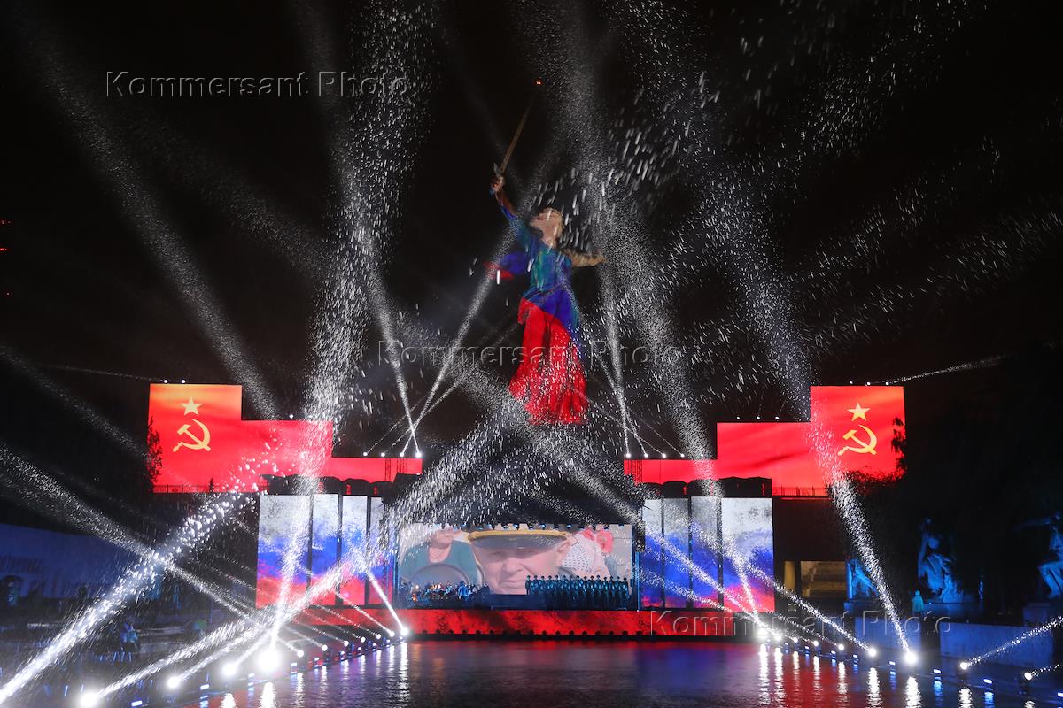 Празднование Дня Победы. Гала-концерт и праздничный салют на Мамаевом кургане на фоне скульптуры…