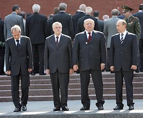 Президент России Владимир Путин (в центре) на церемонии возложения в День памяти и скорби по павшим…