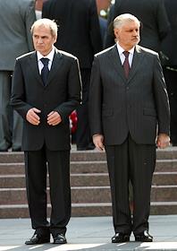 Президент России Владимир Путин (справа) и председатель Правительства России Михаил Фрадков (слева)…