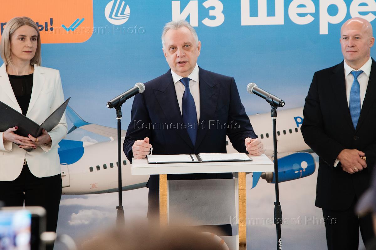 Церемония встречи самолета Boeing 737-800 авиакомпании "Победа", посвященная началу полетов…