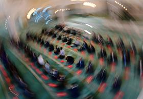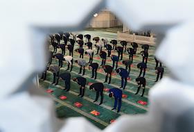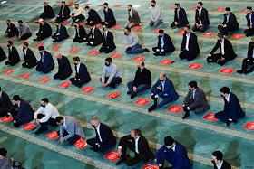 Мусульманский праздник Ураза-Байрам. Верующие во время намаза в Московской Соборной мечети.