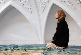 Мусульманский праздник Ураза-Байрам. Верующая во время намаза в мечети "Ирек".
