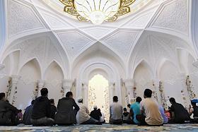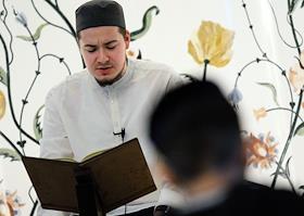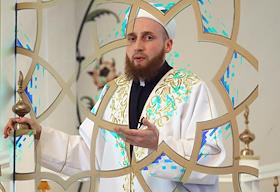 Мусульманский праздник Ураза-Байрам. Священнослужитель во время намаза в мечети "Ирек".