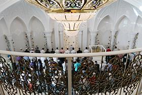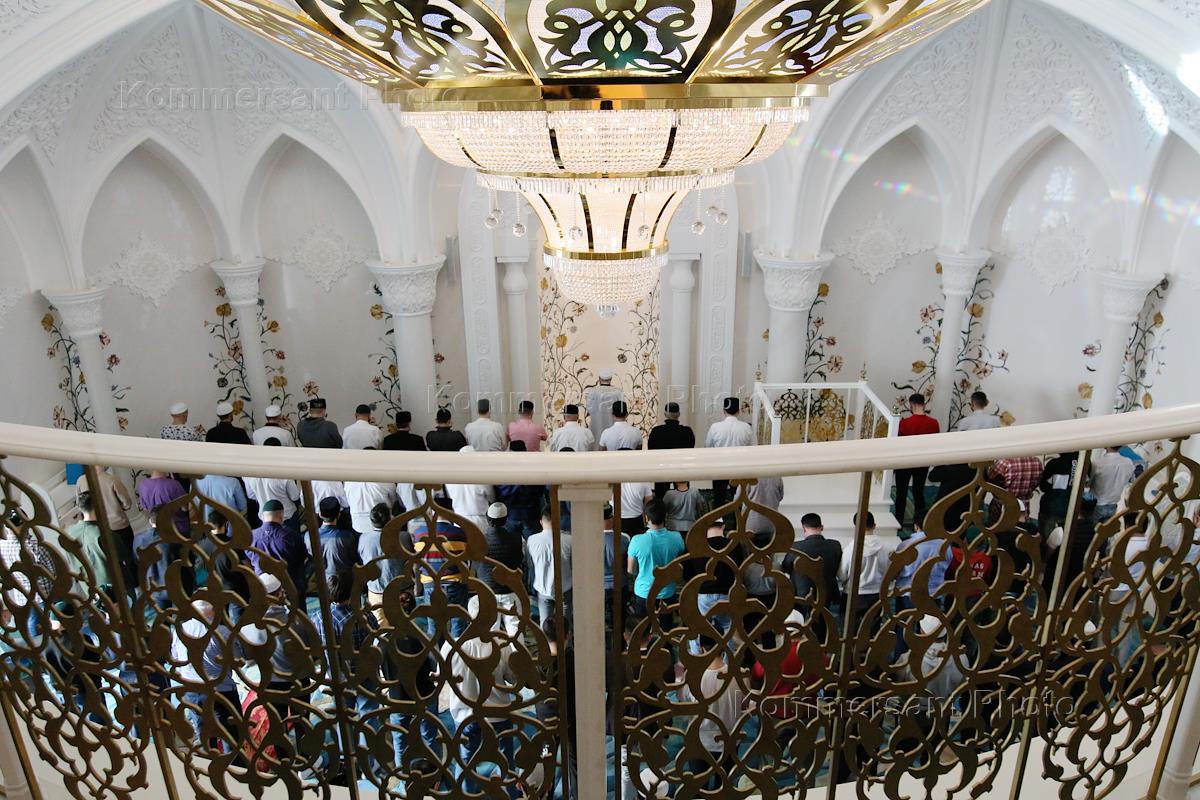 Мусульманский праздник Ураза-Байрам. Верующие во время намаза в мечети "Ирек".