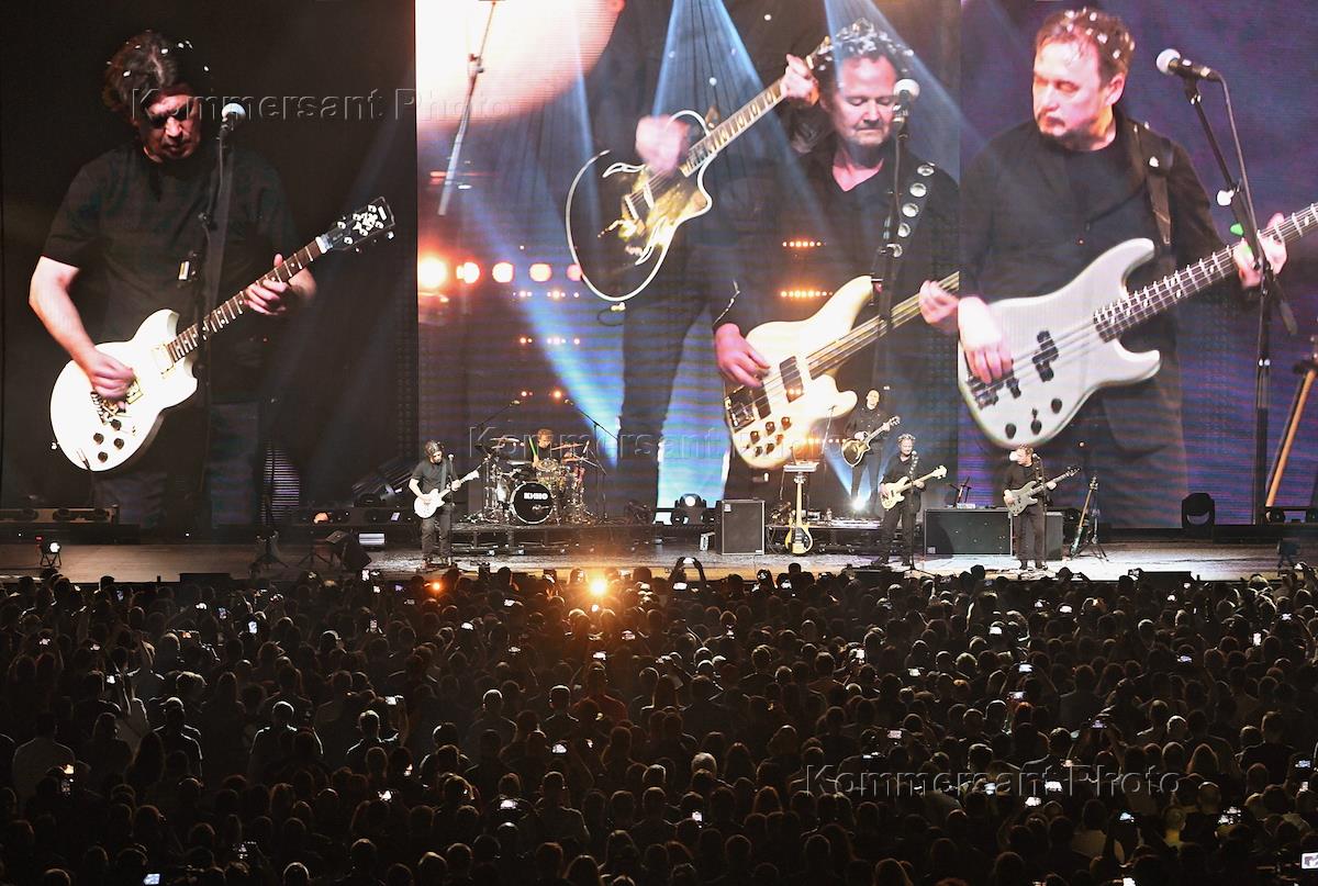 Концерт воссоединившейся группы "Кино" прошел на сцене комплекса "ЦСКА Арена". Слева направо:…