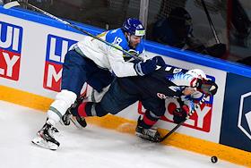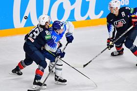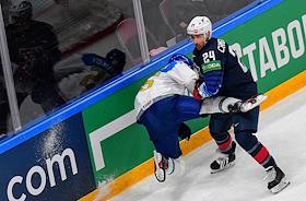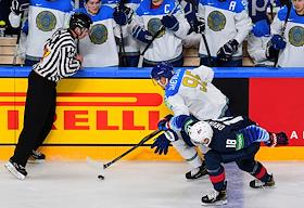 Чемпионат мира по хоккею 2021. Матч между сборными США и Казахстана на стадионе "Арена-Рига". Игрок…