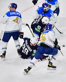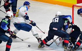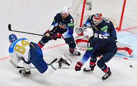 Чемпионат мира по хоккею 2021. Матч между сборными США и Казахстана на стадионе "Арена-Рига". Игроки…