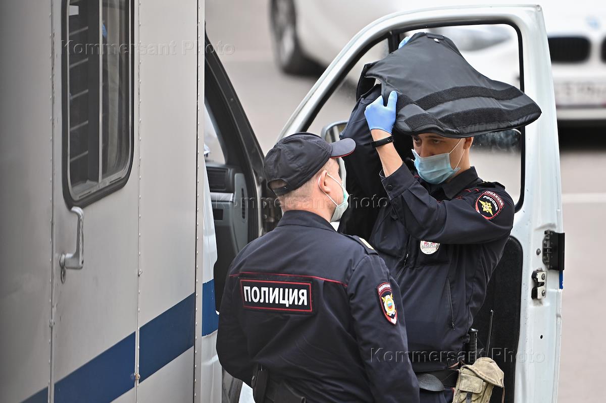 Жанровая фотография. Сотрудники полиции у здания Басманного районного суда во время доставки…