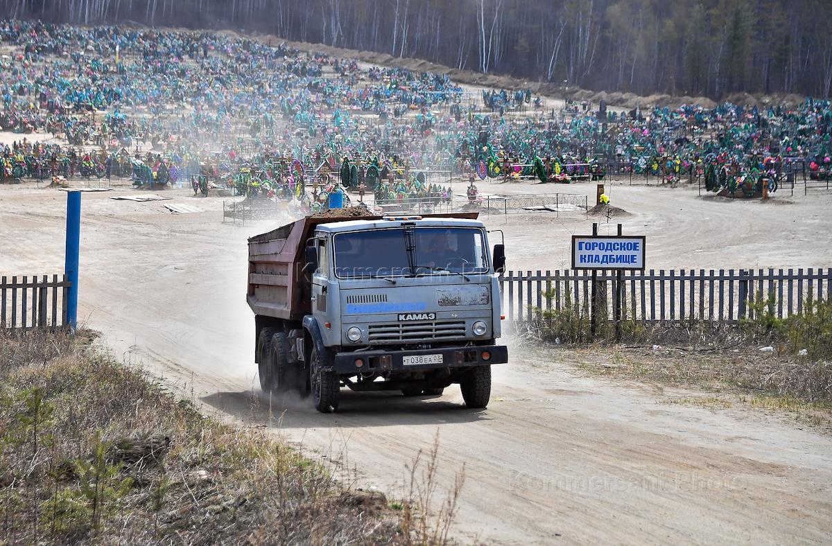 Виды Северобайкальска. Жанровая фотография. Грузовик выезжает с территории городского кладбища.