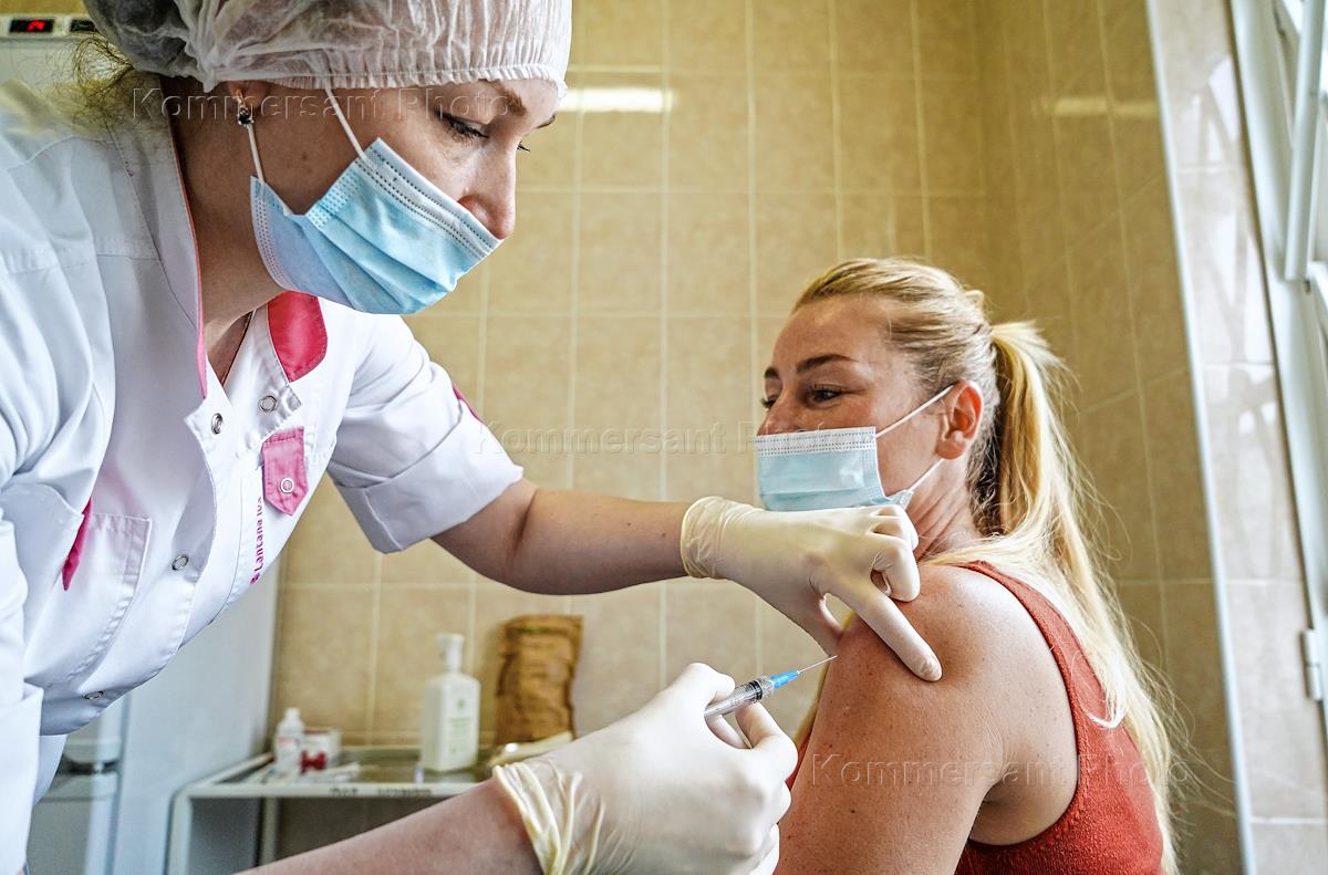 Вакцинация от коронавирусной инфекции COVID-19 в поликлиническом отделении №64. Жанровая фотография.…