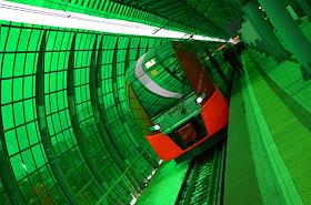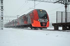 Виды Москвы. Жанровая фотография. Поезд на одной из станций Московского центрального кольца (МЦК).