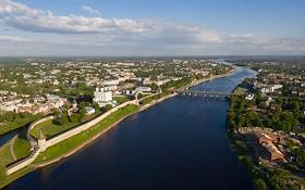 Виды Пскова. Псковский кремль (Кром) при впадении реки Псковы в реку Великую.