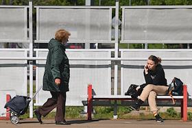 Жанровая фотография. Молодые люди выбирают самокаты на стоянке проката самокатов в Парке Горького.