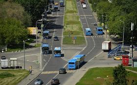 Виды Москвы. Жанровая фотография. Автобусы во время движения по маршруту.