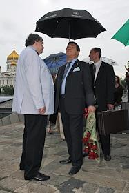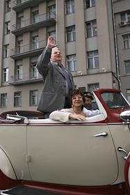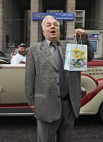 Актер Михаил Державин на праздновании своего 70 - летия у здания Театра Эстрады.