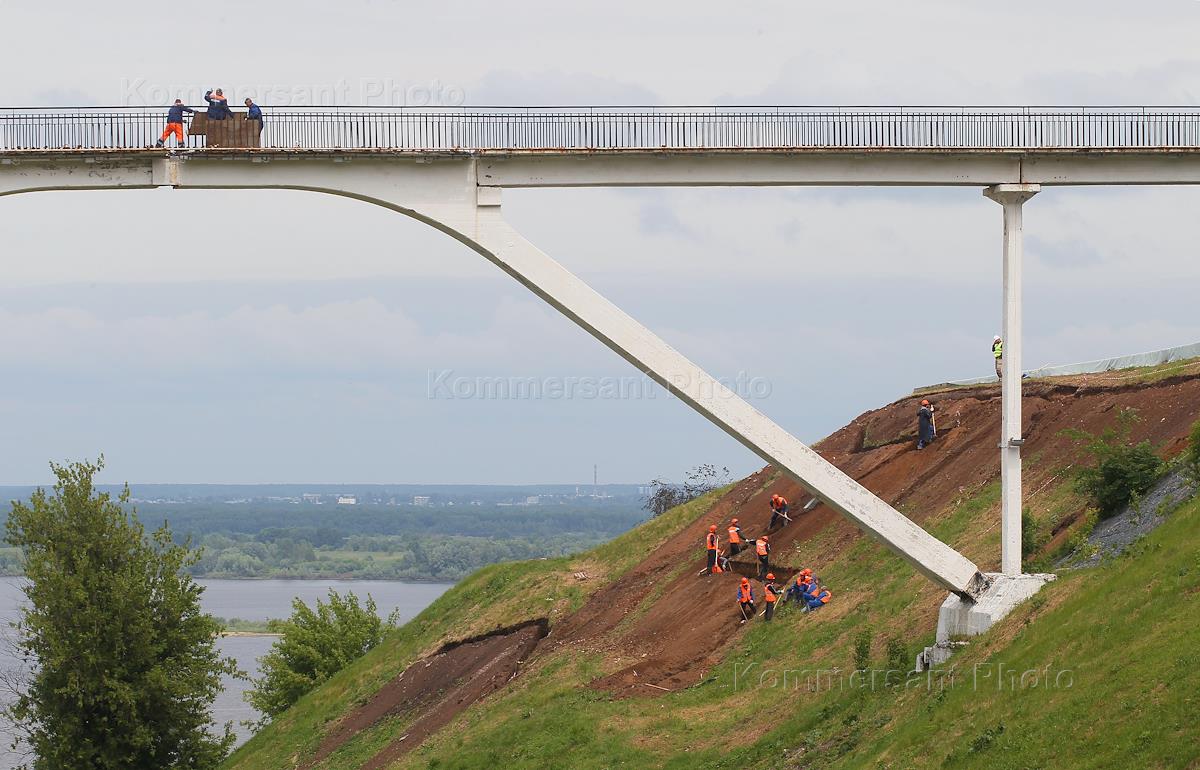 Виды Нижнего Новгорода. Жанровая фотография. Работы по ремонту пешеходного моста через Успенский…