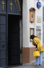 Виды Москвы. Никольская улица. Жанровая фотография. Женщина у входа в Заиконоспасский мужской…