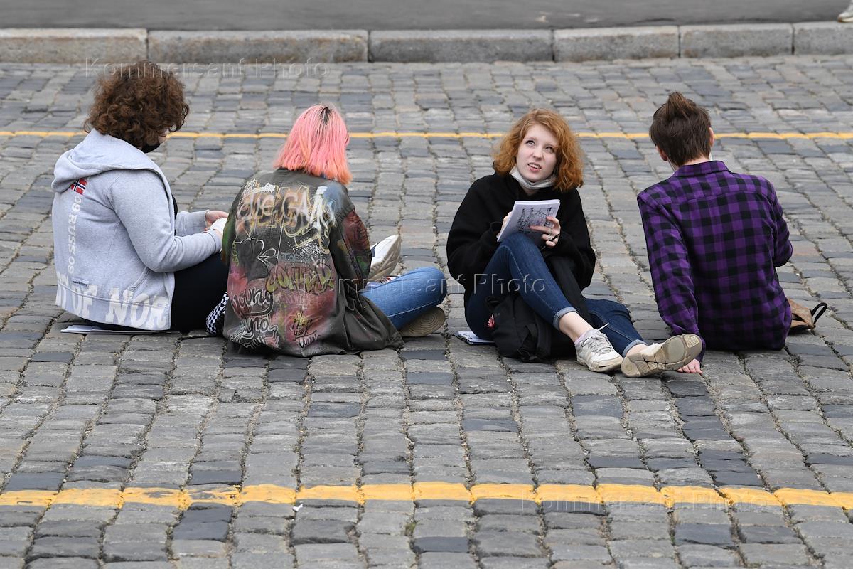 Виды Москвы. Жанровая фотография. Молодые люди на Васильевском спуске.