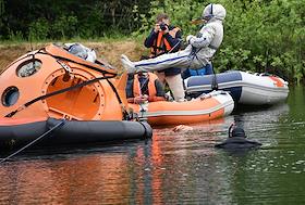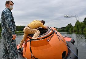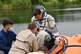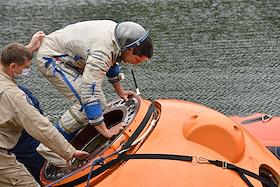 Тренировка экипажа МКС-69 по действиям после посадки спускаемого аппарата на водную поверхность на…
