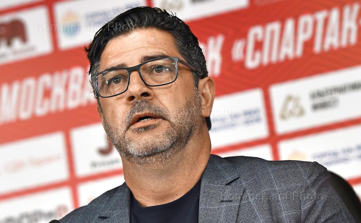 Главный тренер футбольного клуба (ФК) "Спартак" Руй Витория во время пресс-конференции на стадионе…