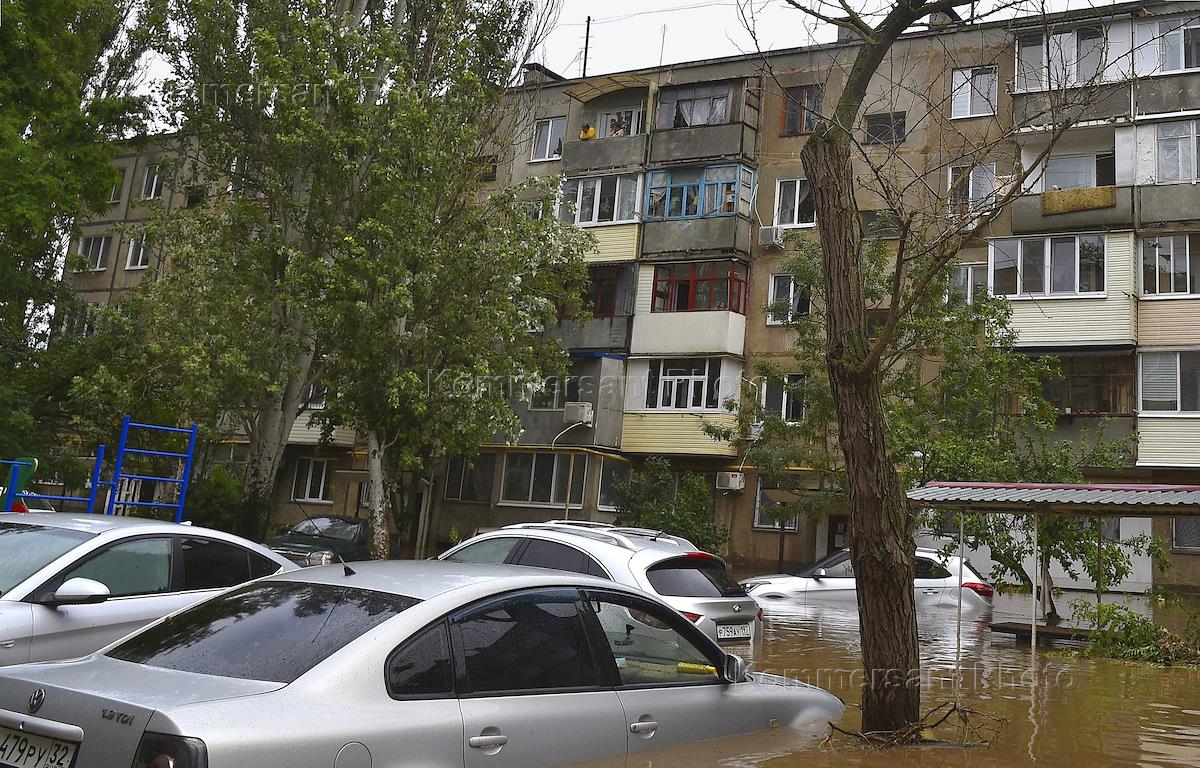 В Керчи из-за обильных дождей вышла из берегов река Мелек-Чесме, центр города превратился в маленькую «Венецию».
