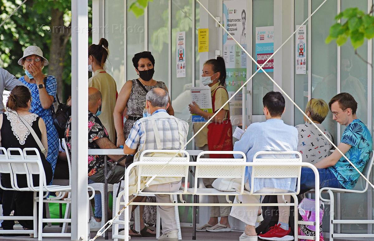 Вакцинации от коронавирусной инфекции COVID-19 в павильонах "Здоровая Москва" возле концертного…
