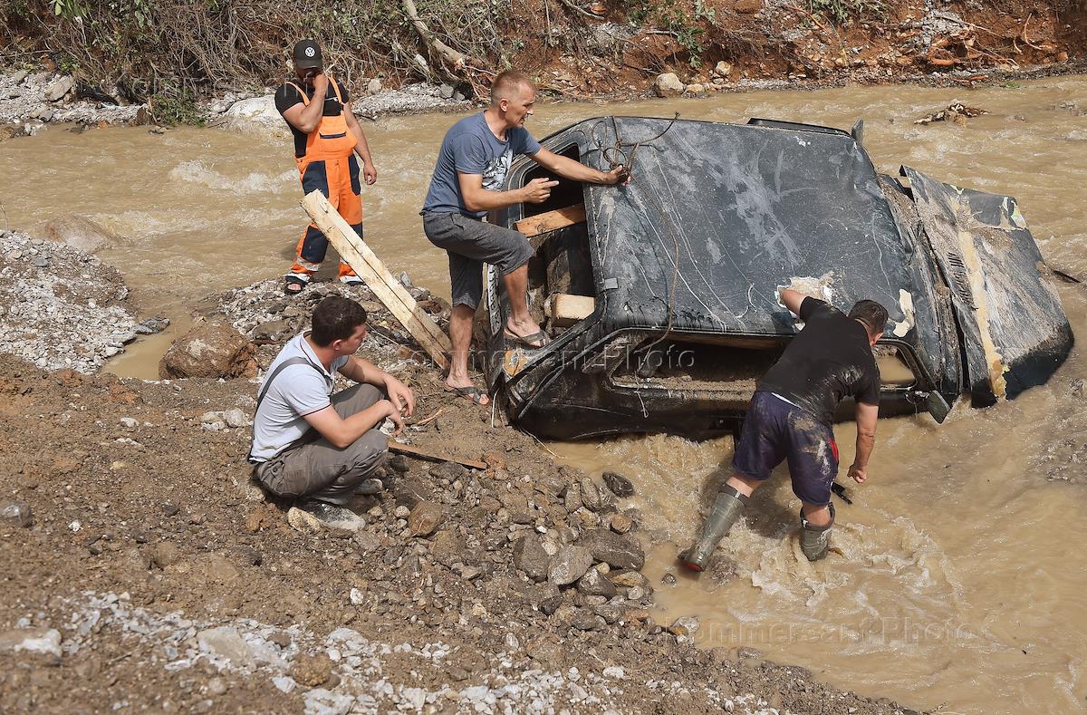 Ликвидация последствий наводнения из-за сильных дождей, вызвавших подтопления домов в поселке…