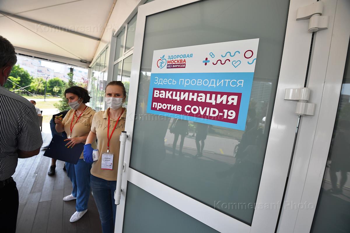 Пункт вакцинации от коронавирусной инфекции COVID-19 в павильоне "Здоровая Москва" в парке на…
