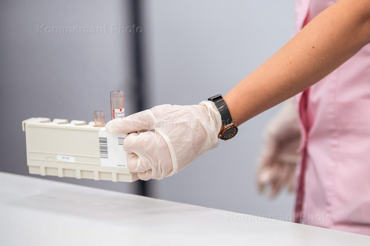 Областной диагностический центр. Работа ПЦР-лаборатории. Пробирки с анализами.