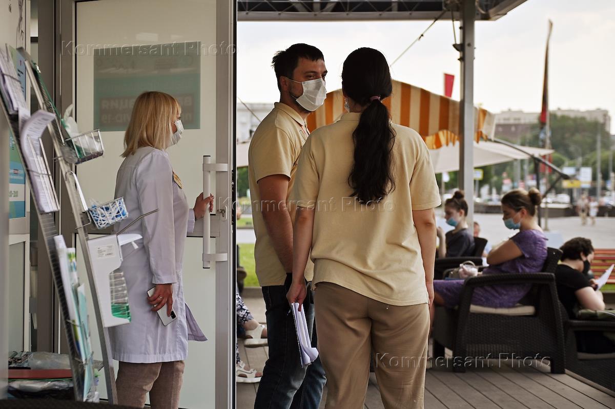 Вакцинация сотрудников Москонцерта в парке Музеон.