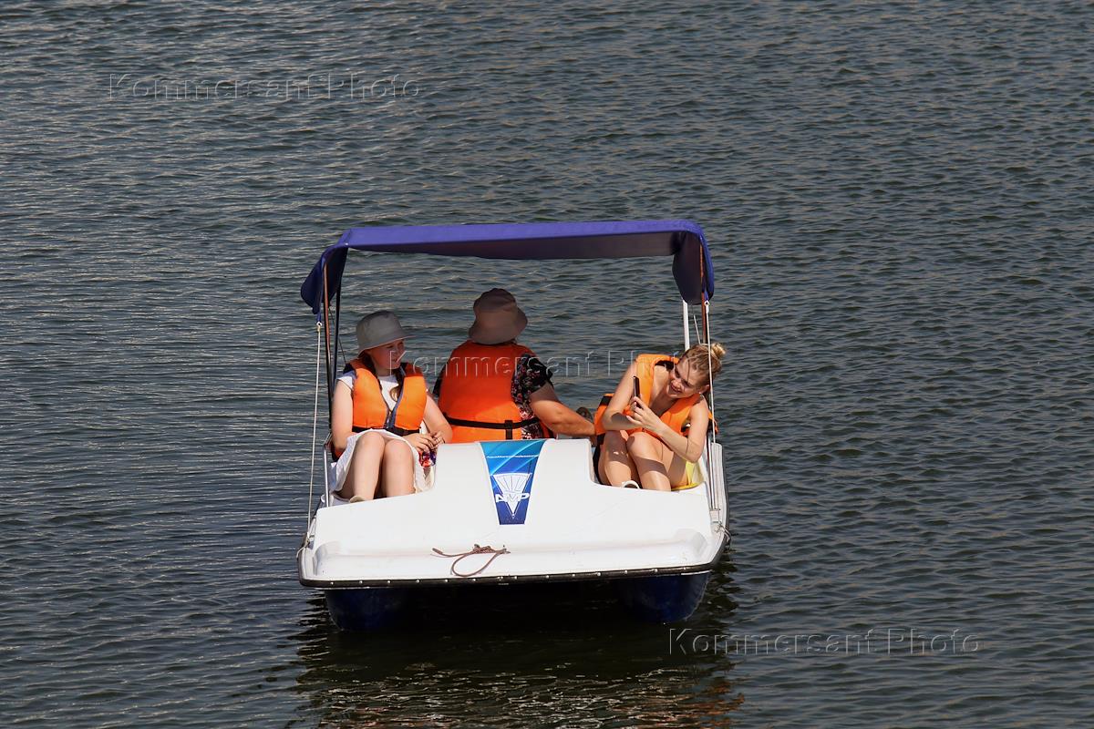 Жанровая фотография. Жара в Казани. Отдыхающие на лодке.